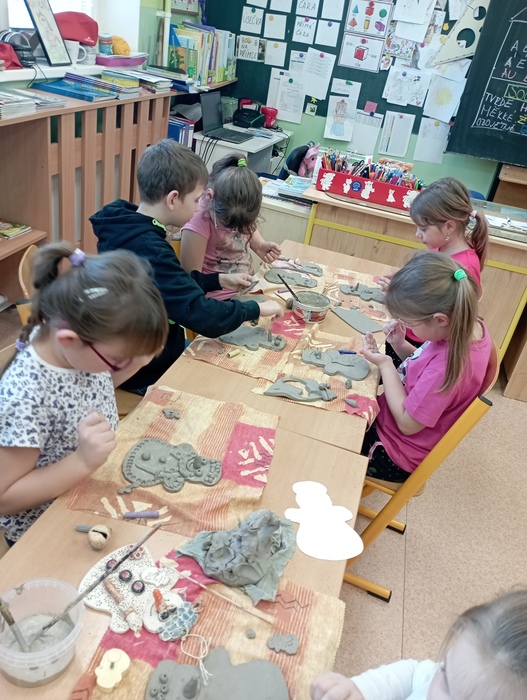 Úvod > Základní škola > Fotogalerie > ŠD - Keramické tvoření sněhulák